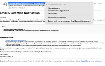 ACHTUNG VOR PHISHING-MAILS "EMAIL QUARANTINE NOTIFICATION"